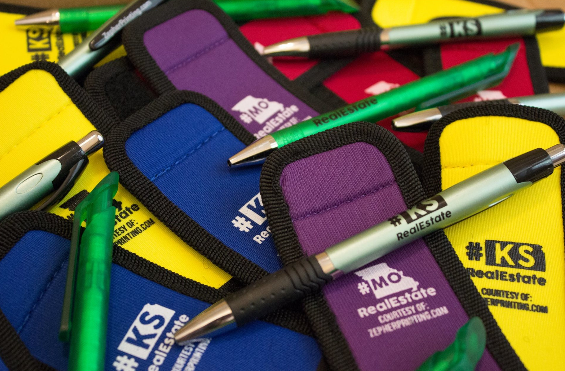 Luggage tags and pens for the Kansas & Missouri real estate convention.